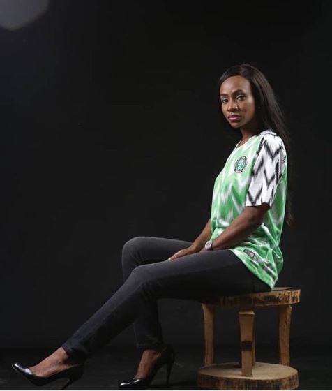 Munirat Antoinette Lecky of the Big Brother Naija 2018 fame as well as brand ambassador at the Continental Basketball League has stunned in the Super Eagles jersey.