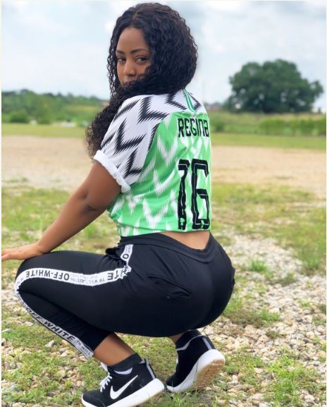 17-year old Nollywood figure, Regina Daniels who has a large following on Instagram has rocked her green and white Super Eagles World Cup jersey as the team prepares to take on Argentina in Russia.